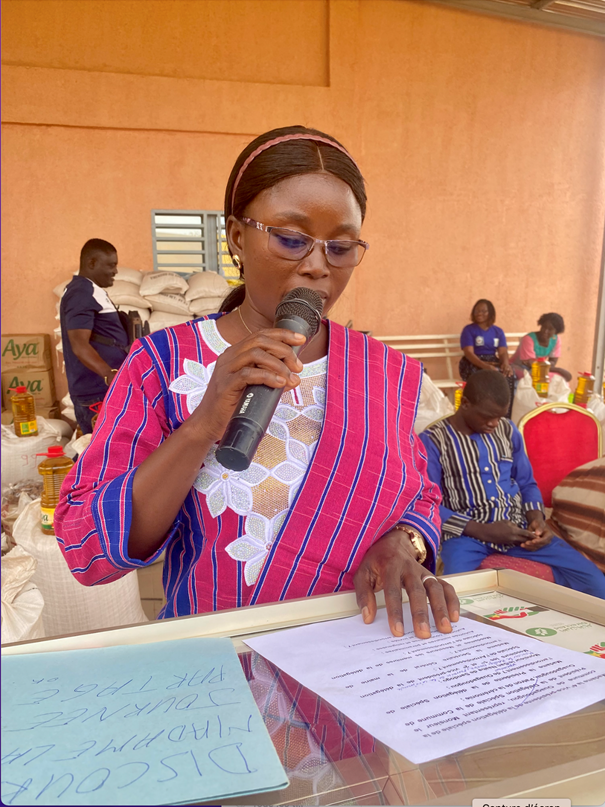 « Je dis merci à Dieu, aux organisateurs et aux autorités, et au président du Faso pour ces vivres qu’ils nous donnent, que Dieu les donne et toujours la force et les moyens » Aminata KABORÉ, Bénéficiaire