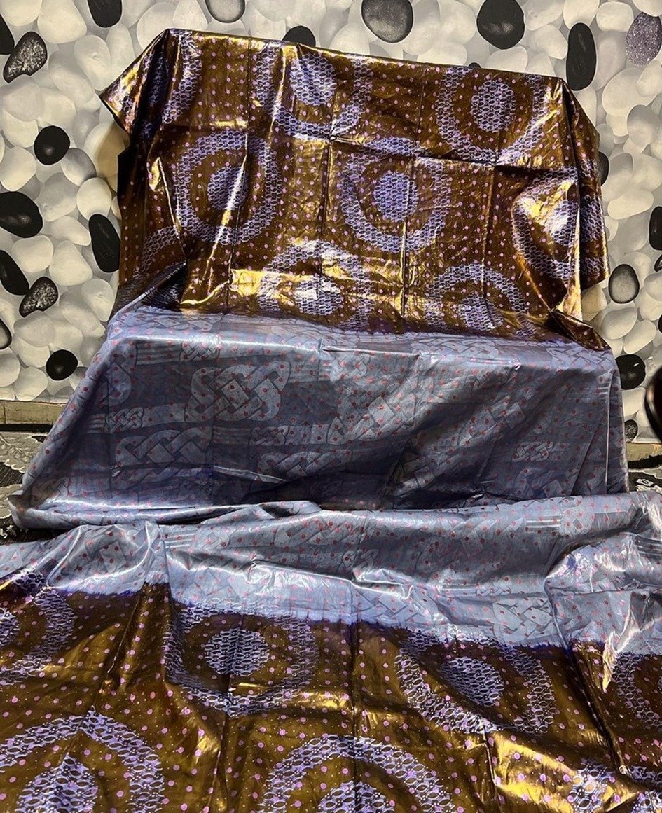 Tissu brillant, accessible, souvent choisi par celles et ceux qui souhaitent retrouver l’éclat du bazin à moindre coût, il s’est imposé comme une alternative assumée.