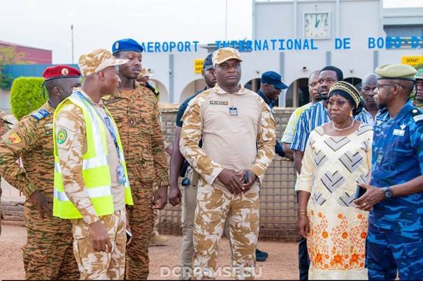 La délégation ministérielle s’est ensuite rendue à l’aéroport international de Bobo-Dioulasso, où les discussions ont porté sur les défis sécuritaires propres à cette infrastructure stratégique.